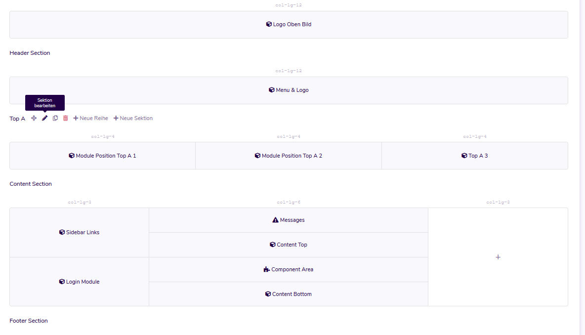 Basierend auf Bootstrap Framework ermöglicht der Drag N Drop Layout Builder unbegrenzte Positionen zu erstellen, zu verschieben und anzupassen.